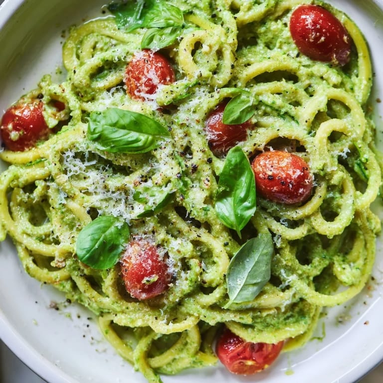 Save My neighbor showed up with a spiral gadget one Saturday morning, declaring she was done with pasta guilt. We stood in my kitchen, turning zucchini into green ribbons while debating whether this counted as real cooking or just aggressive vegetable styling. The pesto came together so fast I almost didn't trust it, but one bite of that creamy avocado coating clinging to crisp zoodles made me a believer. Now I keep a spiralizer in the drawer next to the peeler, ready for those nights when I want something fresh without turning on the oven. It's become my answer to summer heat and weeknight hunger in equal measure.