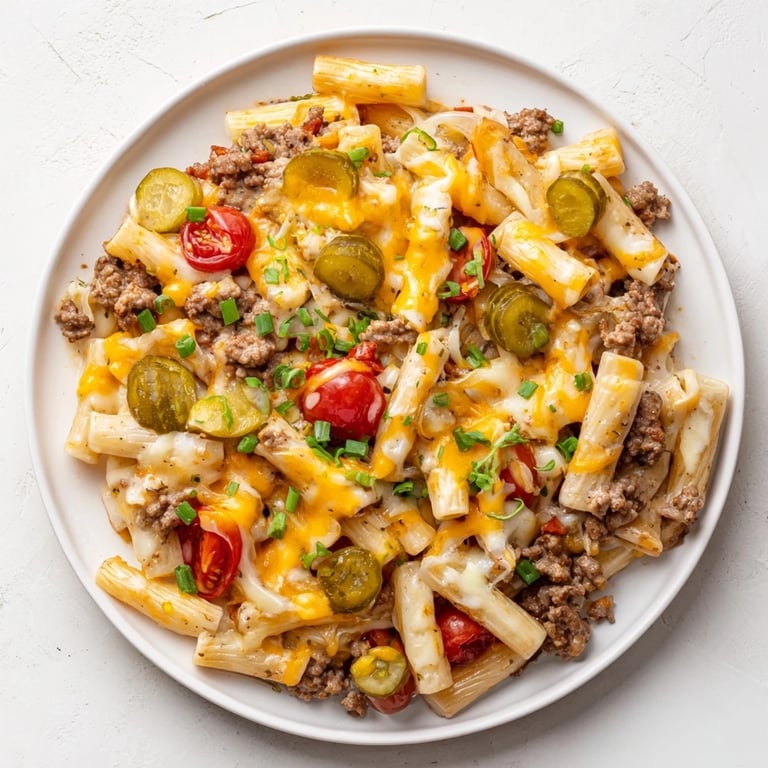 This recipe quickly became a favorite in my home after the first try. It blends the nostalgic taste of cheeseburgers with the warmth of baked pasta for the ultimate family dinner.