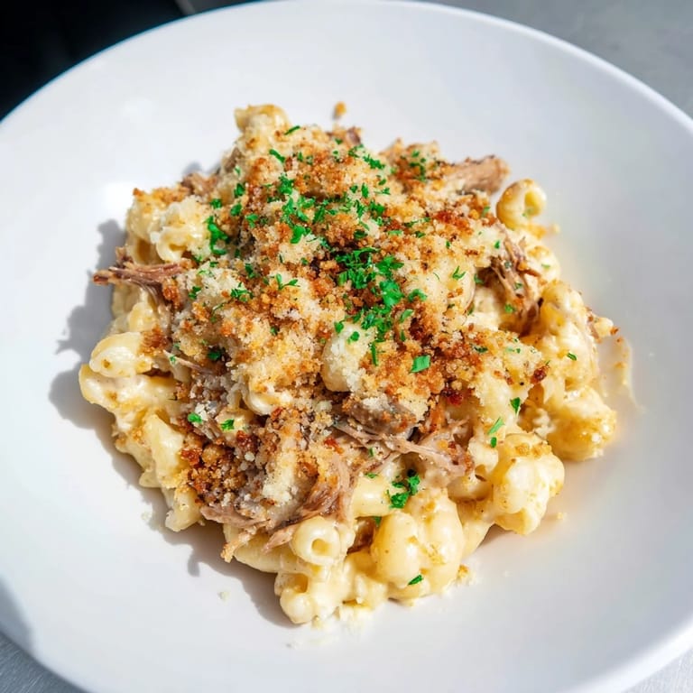 Save A rich and comforting dish combining creamy macaroni and cheese with tender, smoky barbecue pulled pork, finished with a crispy topping. This hearty main is perfect for any gathering or cozy night in.