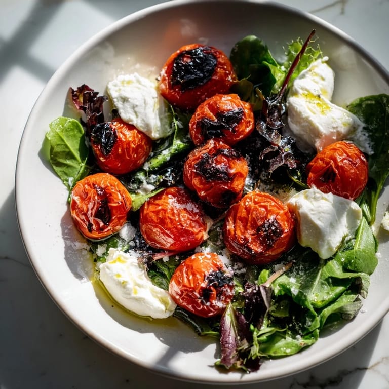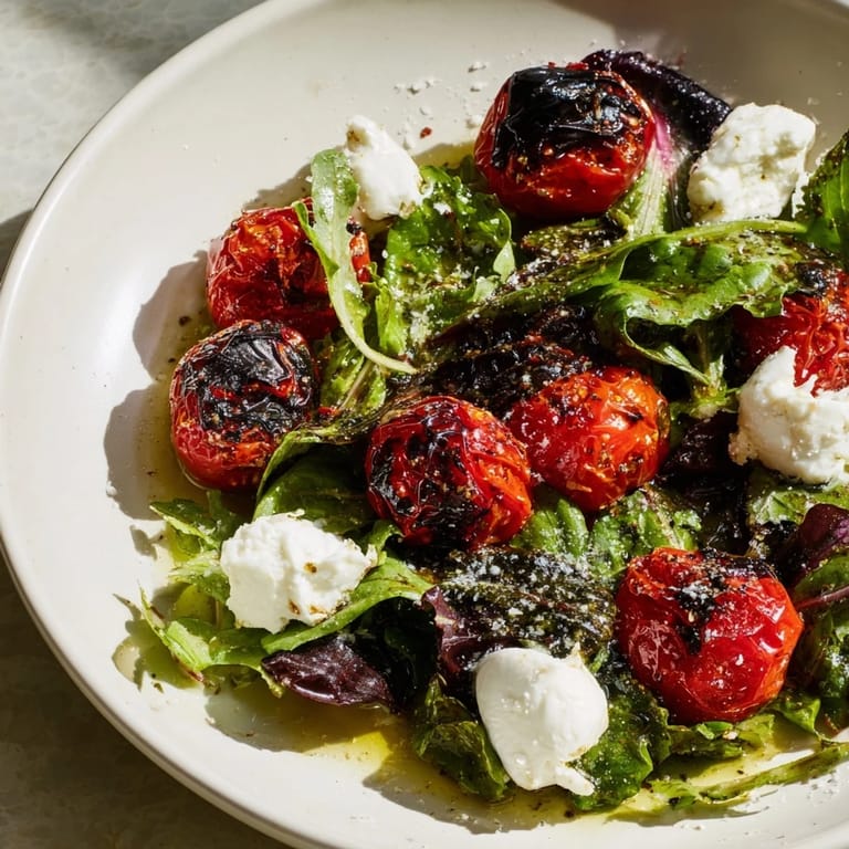 Save There's a moment in summer when you realize that tomatoes don't need much to shine, and that's exactly when this salad landed on my table. A friend had dropped off a basket of cherry tomatoes from her garden, more than I knew what to do with, and instead of letting them sit in a bowl getting sadder by the day, I decided to char them. The heat transformed those little orbs into something entirely different, with blistered skins and a concentrated sweetness that made me stop mid-chop and taste one straight from the pan.