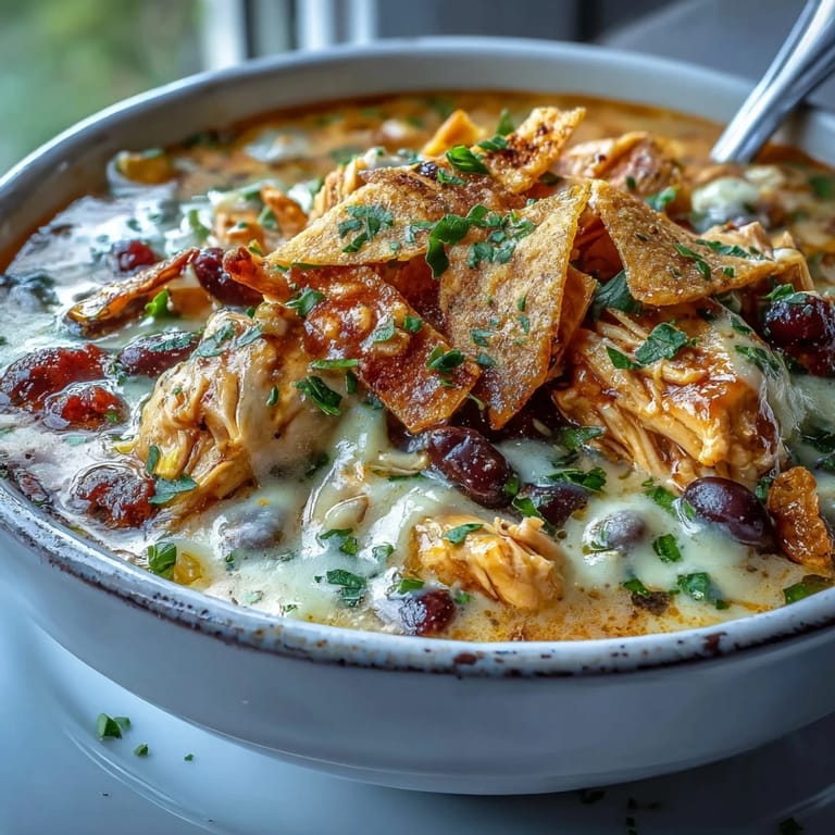Save My sister texted me at 4 PM on a Tuesday asking if I could bring soup to dinner that night, and I had maybe forty minutes to pull it off. I remembered this tortilla soup from a potluck months earlier, the kind that tastes like it simmered all day but actually doesn't. That night, as the kitchen filled with cumin and the broth turned golden, I realized why people keep asking me for this recipe—it's the rare dish that feels homemade without demanding your whole evening.