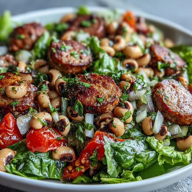 Save My neighbor Marcus invited me over one January morning with nothing but a cryptic text: "Trust me on this." What arrived at his table was this vibrant black-eyed pea salad, and I realized he'd taken everything I loved about Southern tradition and made it feel entirely new. The turkey sausage was golden, the mustard dressing cut through with tarragon in a way that felt both elegant and honest. I asked for the recipe before I'd finished my first plate.