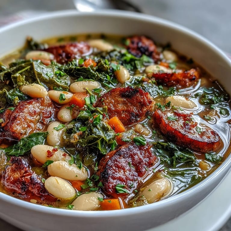 Save There's something about the smell of roasting garlic that makes a kitchen feel like home, even when you're just trying to throw together a weeknight dinner. My neighbor Marco handed me this recipe on a crisp October afternoon, scribbled on the back of a grocery list, and promised it would change how I thought about soup. He was right, but not in the way I expected—it wasn't just about the flavors, though the spicy sausage and creamy beans are undeniably comforting. It became the meal I'd make when I needed to feed people without fussing, when I wanted something that tasted like it took hours but came together in less than one.