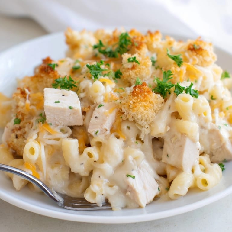 You can swap the chicken for turkey ham or a plant-based rotisserie alternative For lactose issues try lactose-free milks and cheeses Substitute panko with gluten-free crumbs if needed Broccoli peas or sautéed mushrooms can boost the flavor and veggie content