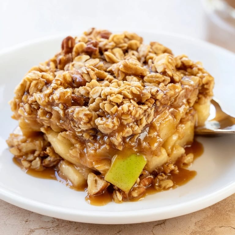Save A luscious dessert featuring tender apples baked with a maple&bourbon caramel sauce and a crisp oat topping. Perfect for autumn gatherings or a cozy night in.