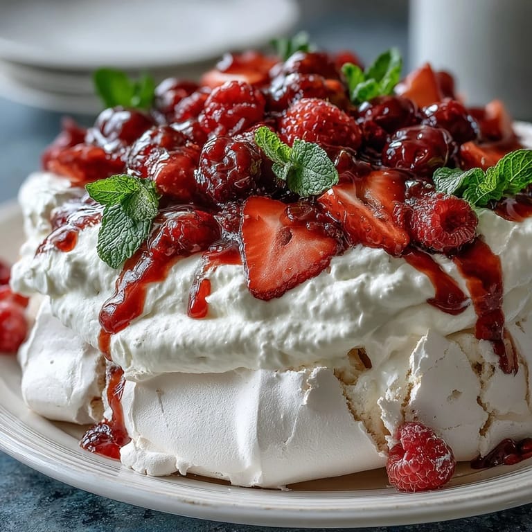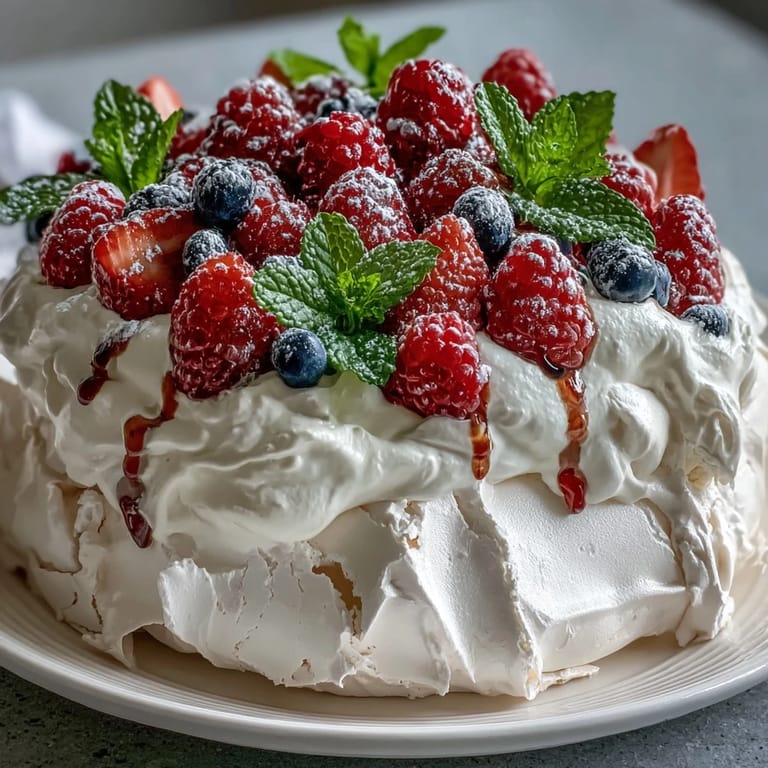 Serving this pavlova to my mother that Mother's Day morning, I watched her eyes light up in a way that had nothing to do with the taste and everything to do with the effort. She took a bite and the meringue shattered under her fork with this delicate crunch, and she said it was perfect—not because it was restaurant-quality, but because it proved I'd actually tried something that scared me. That's when I realized pavlova isn't really about impressing people with technique; it's about showing up with intention.