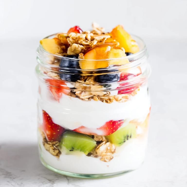 Save A simple, vibrant parfait layering creamy yogurt, fresh seasonal fruit, and crunchy granola—a photogenic breakfast or snack that comes together in minutes.