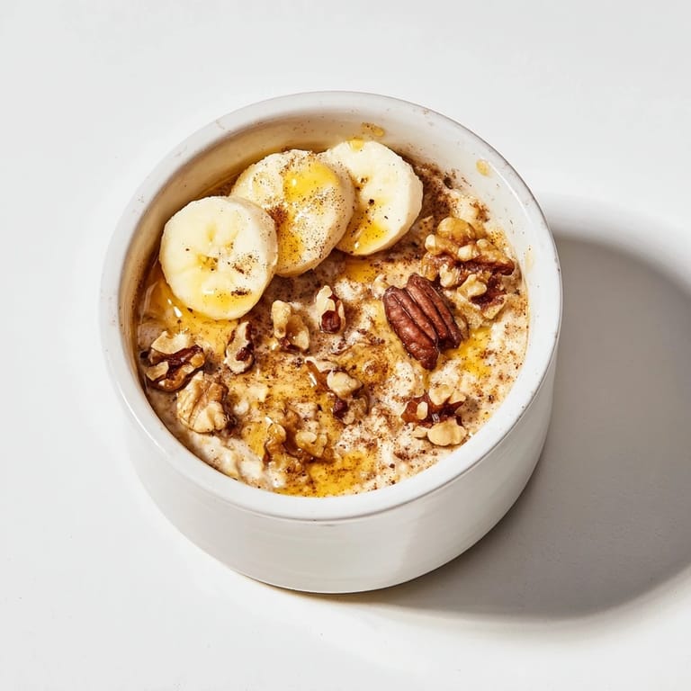 Save A warm, nourishing breakfast treat featuring creamy baked oats, sweet banana, and a drizzle of honey. These individual ramekins are baked to perfection and make a comforting start to your morning.
